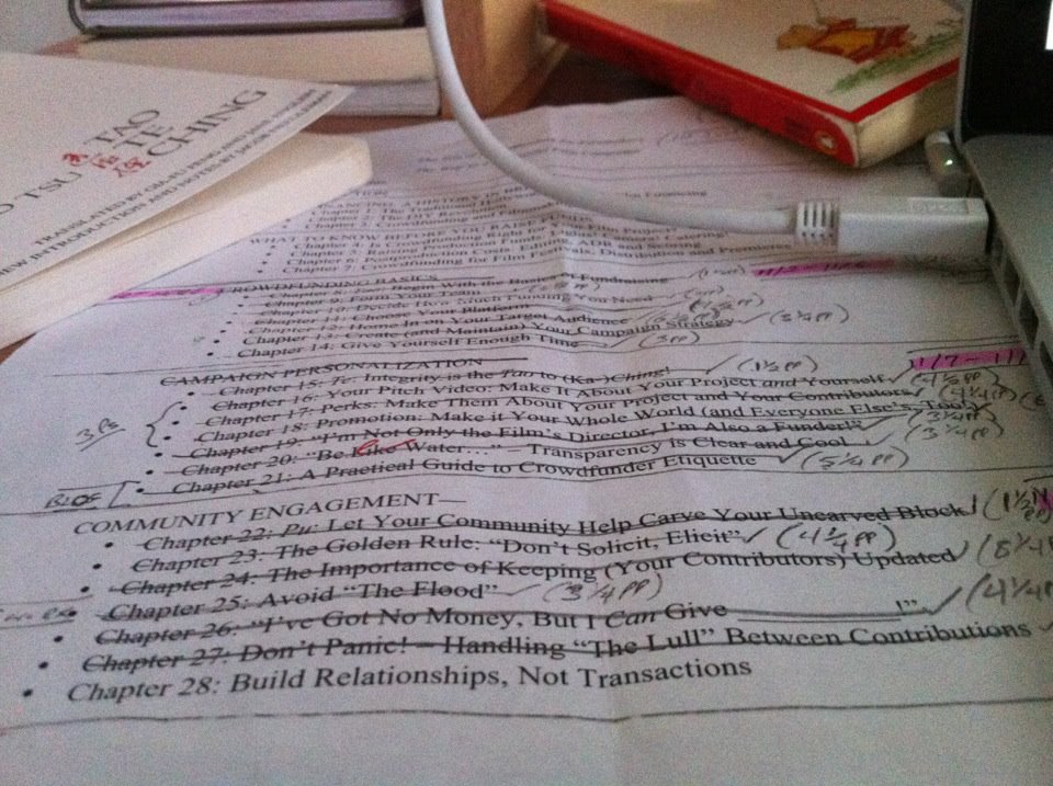 Tuesday, November 1st, 2011 marks the day I started writing my very first book, The Tao of Crowdfunding for Filmmakers, for Michael Wiese Productions. Thirty days later, I’m about a hundred pages into my 200-page guide focused on helping indie filmmakers raise funds for their films on IndieGoGo and other crowdfunding platforms.