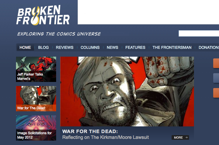 My article "War for the Dead" featured on the Broken Frontier homepage.