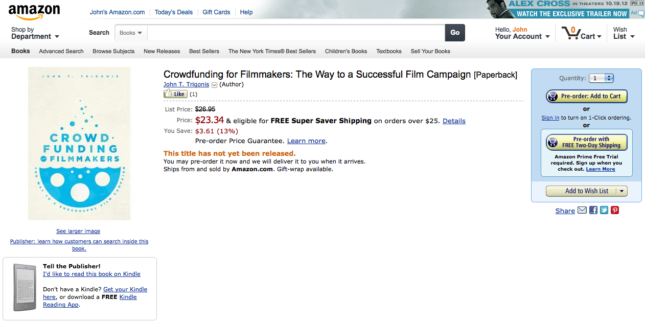 “There is actually a science to the new zeitgeist for artists known as crowdfunding and John Trigonis’ Crowdfunding for Filmmakers contextualizes the history as well as outlines a step by step method to a successful crowdfunding campaign in an easy and enjoyable read indispensable to any and all future crowdfunders.” –– Filmmakers Jayce Bartok (The Cake Eaters, blogger MovieMaker) and Tiffany Bartok (Tiny Dancer)